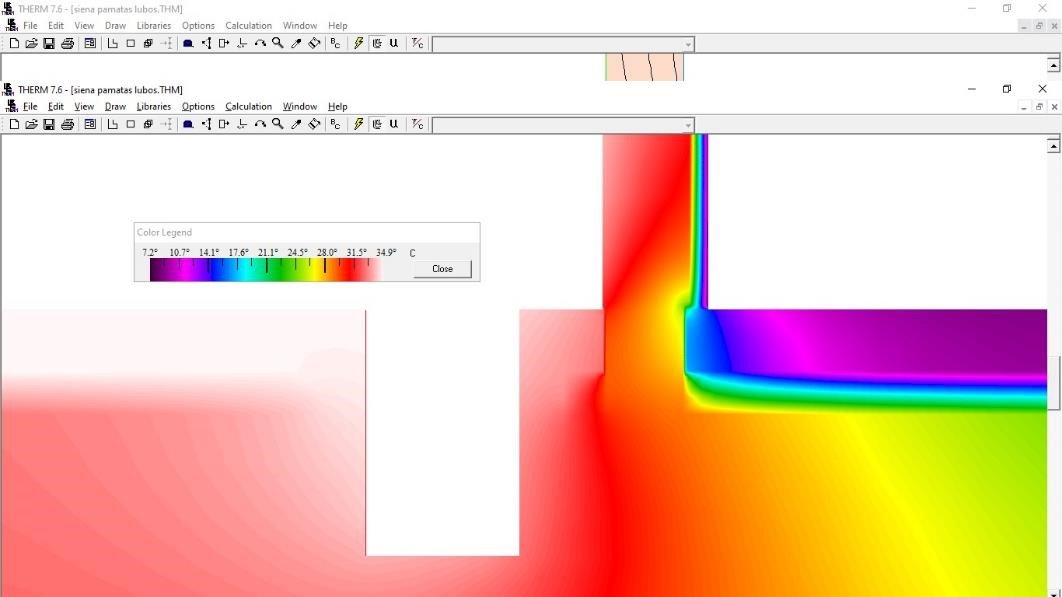 Gamybos ir pramonės paskirties pastato vidinės atitvaros tarp šildomos ir vėsinamos patalpų rasos taško modeliavimas.